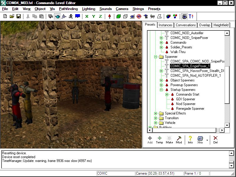 Havoc was posed in RenX for these shots (as describe in the previous post) In the third panel havoc was supposed to have a "bighead", but unfortunately resizing the bone didn't work.