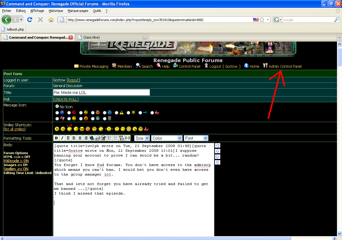 You forget I know fud forums. You don't have access to the admincp which means you can't ban. I would bet you don't even have access to the group manager lol.