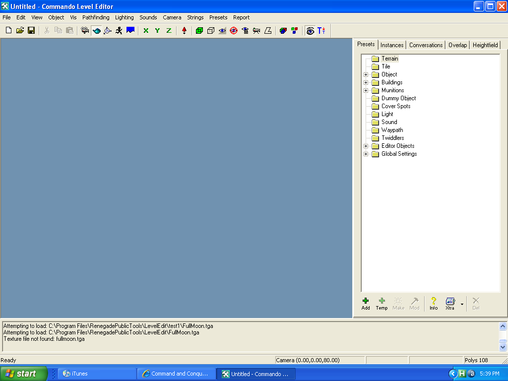 I just downloaded renegade public tools, opened leveledit, made a package, no presets. so i extracted objects.ddb from always.thu and put it in my Package folder/Presets