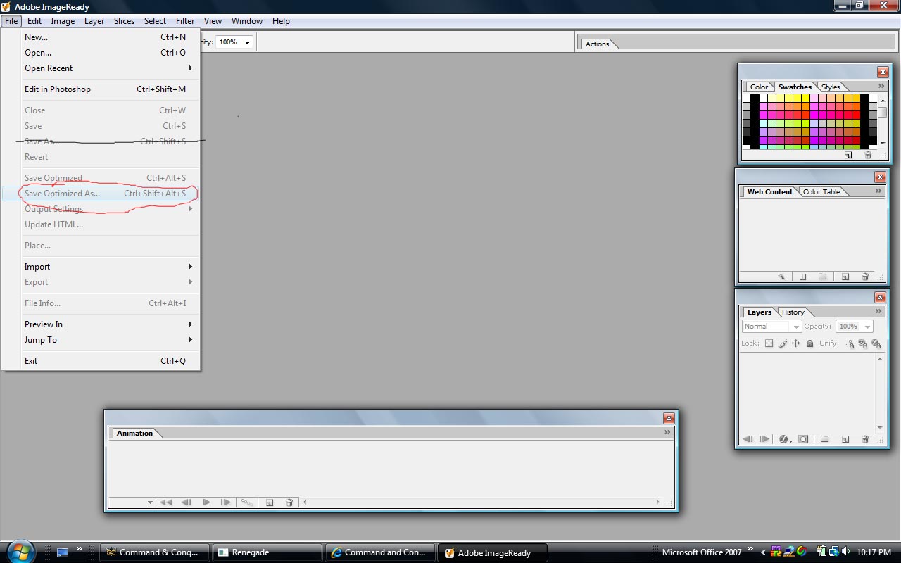 At least that is what my Image Ready looks like, but I have CS 8. I figure that menu should be the same though.