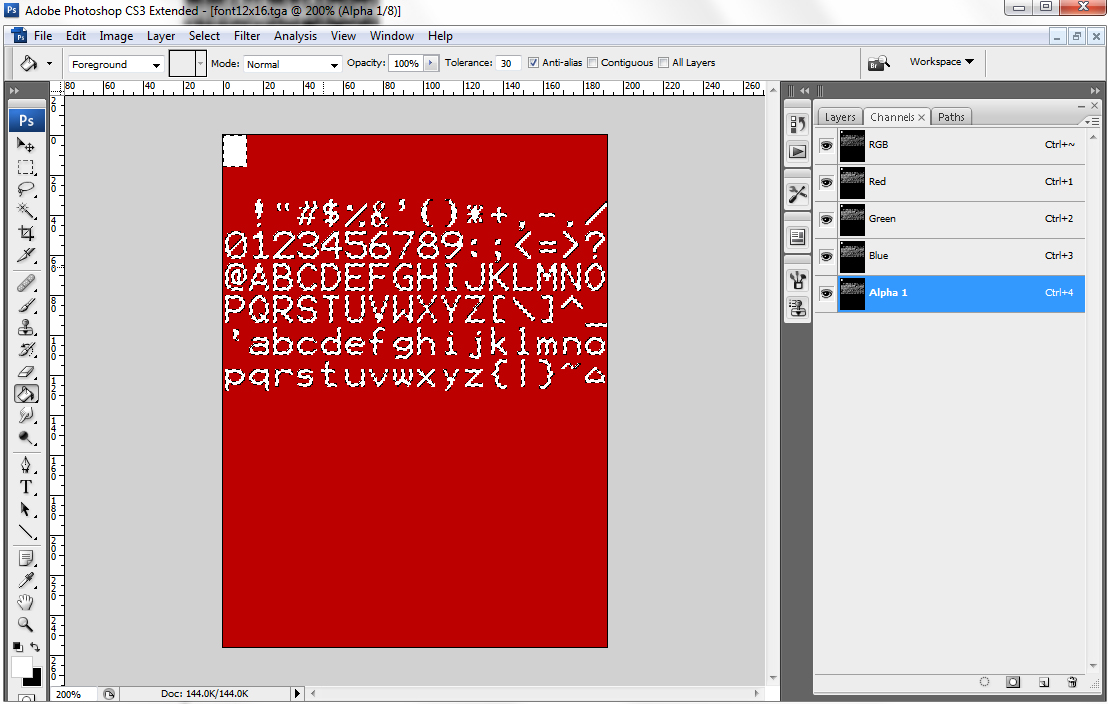The .tga font files are actually rather straightforward. Let's say we have the file font8x8.tga
