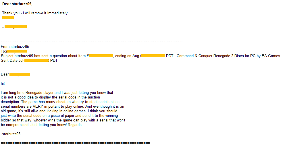 "Go ahead and send me the serial, please. You can trust me. I'm the prince of Nigeria, after all.
