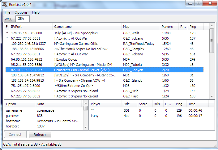 as shown in the attached screenshot. With my GameSpy plugin you can set it so GameSpy broadcasts a custom game title for your server different from the one you set for WOL, so the player count doesn't show up in the title of your server on GSA.