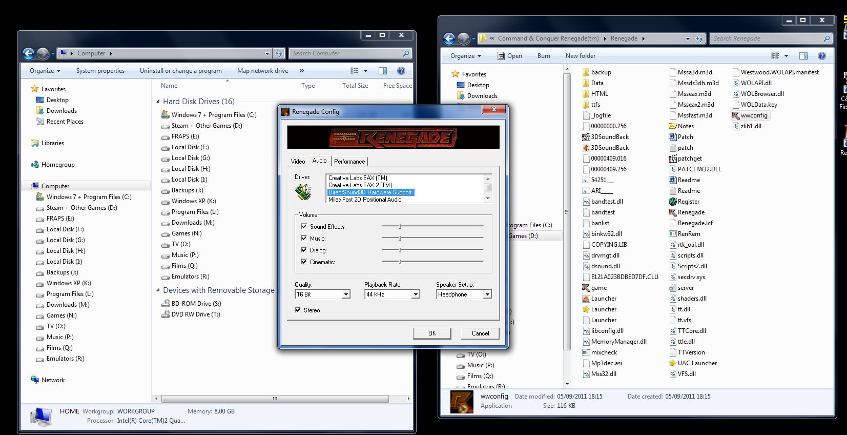 Only problem is I dont have the one i wanted, the A3D driver. The files are in the renegade folder, it obvioulsy doesnt want to load them still.