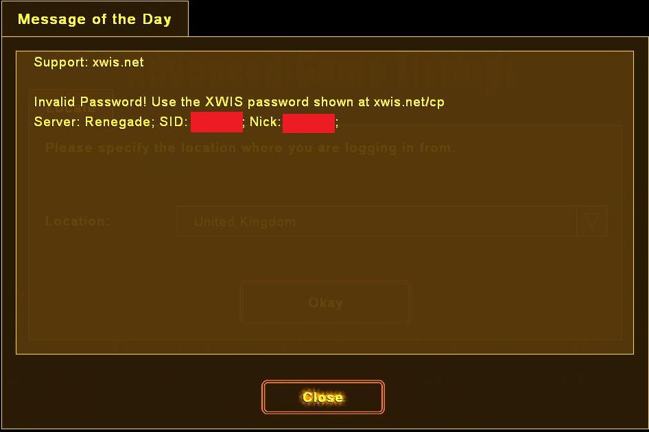 I just wanted to point this out as everyone keeps saying to ignore it and go the direct connect route when we should be helping people to connect through WOL/XWIS first. Just highlighting that people should double check the WOL/XWIS control panel and make sure they have the correct nick and correct password first should be enough. The control panel was actually quite straight forward to use and also reminded me of a few nicks i had forgotten about.