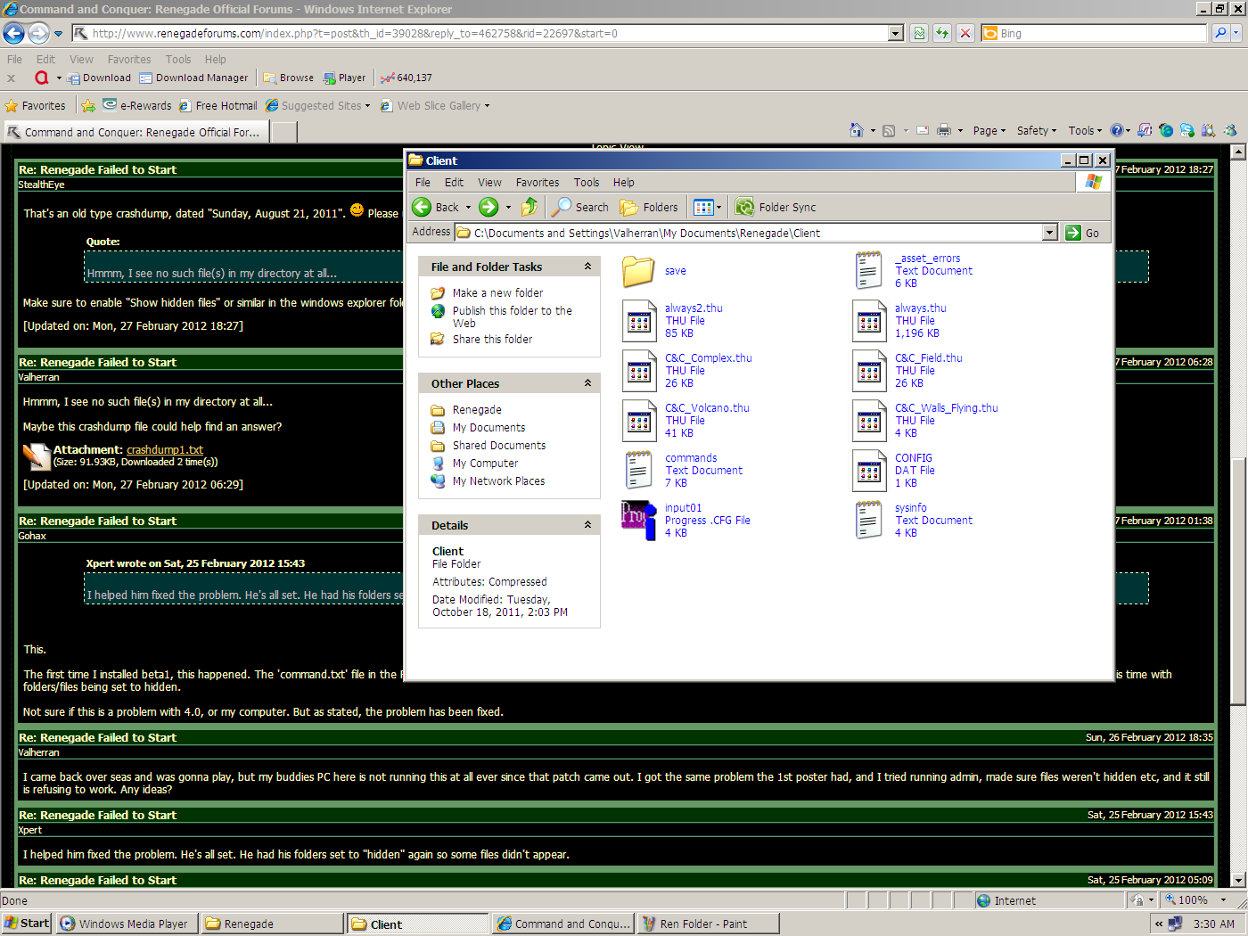 I need you to post a zip file containing all the .dll files and .exe files in your Renegade folder so I can verify whats going on.