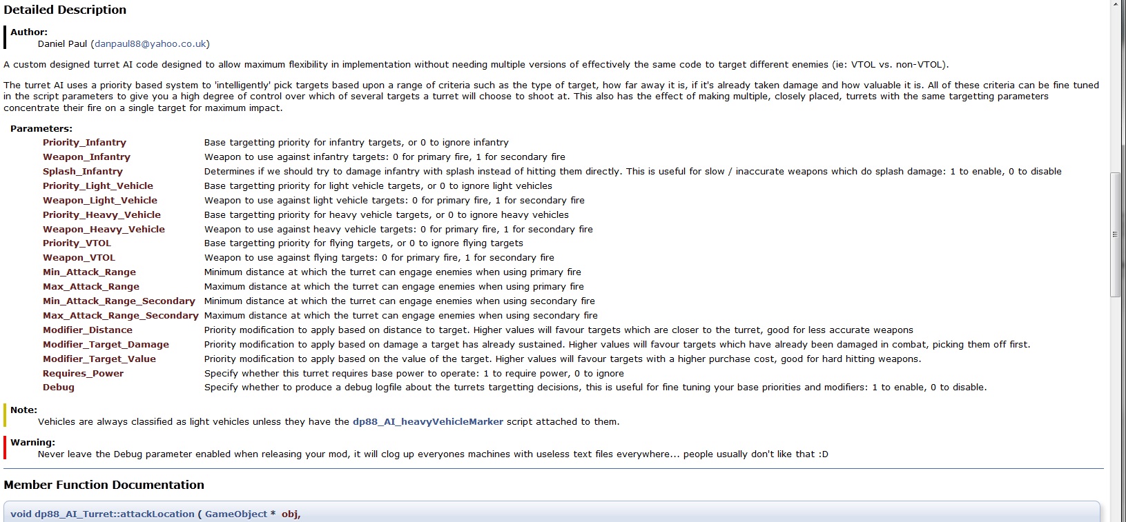 | danpaul88 wrote on Mon, 11 June 2012 03:49 | For reference, dp88_AI_Turret also supports targeting VTOL and ground and is optionally power independent (it also supports target priorities, such that you can instruct it to prefer shooting infantry instead of vehicles if there are any nearby, or to try and finish off badly damaged targets before healthy ones).