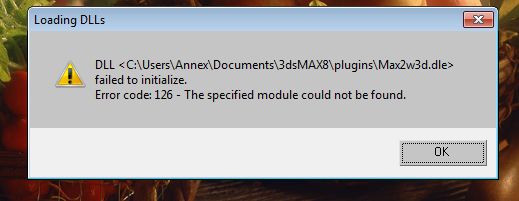 When I launch 3ds I get an initialization error with the Max2w3d.dle