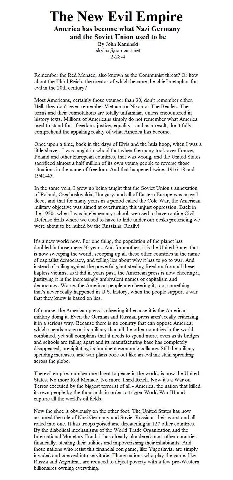 lol since you're already reading on Rense maybe you should go read about how the Bolsheviks were funded by Americans - the USSR and America were two sides of the same coin my friend
