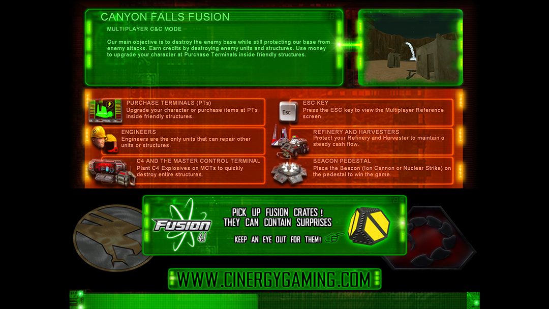 Fusion maps is a server modification that blends various C&C elements into custom and standard Renegade maps and even will include custom maps.