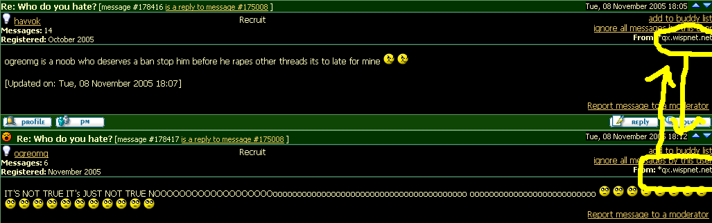 Re: Who do you hate? [message #178422 is a reply to message #178420] Tue, 08 November 2005 17:18 Go to previous messageGo to previous message