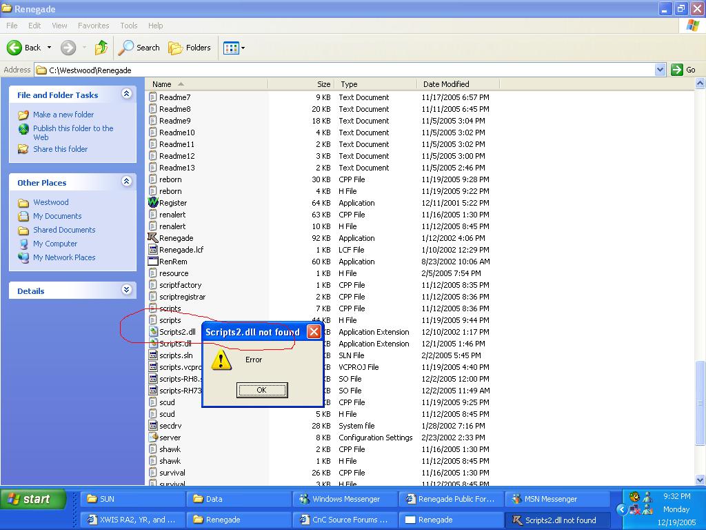 I just reinstalled Renegade, Did the patch, Added all the new scripts stuff and Scripts2.dll. Its trying to tell me It can't find Scripts2.dll?