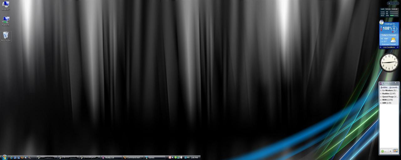 Well, I'm on my 16" miscoulored monitor that I usually use as a secondary because myu 19" primary quit on me. So, here is my lower res than usual desktop: