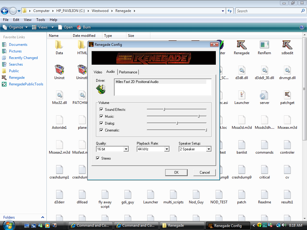 Oh ya, and if anyone else has any problems with this type of deal you will have to put dsound.dll and ALchemy.ini (two files shown below) into the renegade directory.