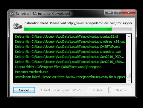 I quit all the programs the restart menu said it was waiting on, then tried again. I "manually" restarted my pc, and tried to play Renegade again (still renlist, it's the only launcher I have installed- before 4.0 I had Renegade Resurrection). Then I got got message #2 (attached).
