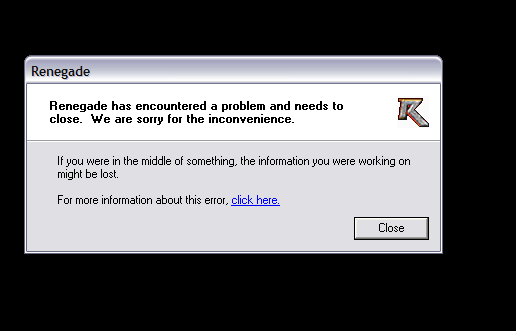I start Renegade via direct connect - whatever I use (ren IP, server launcher, IRC script etc) it stops on "Joining Game..." I I minimise, then restore using alt+tab and i get a black screen with this in the middle: