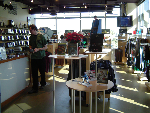 This is a picture of the EA Experience store. Here, we got to buy PC games for $10 and console games for $20. I picked up a copy of TFD and Battlefield 2142 for Blazer for a grand total with tax of $21.56.
