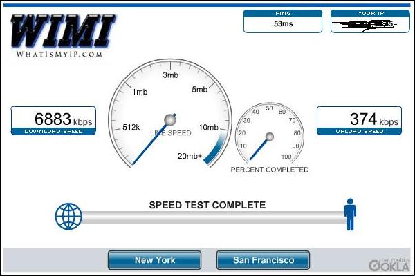 Same here, NY speed is lower. Probably because of information transaction speed. That test is SF