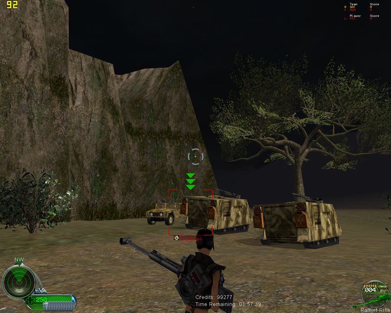 A GDI raid (commando) attacks the lower entrance of a NOD SAM-Bunker.