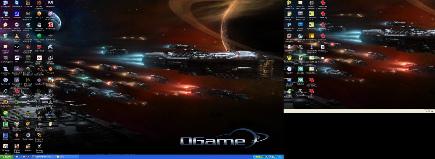 Just to clarify, I'm also running XP. It's just the dock thing at the bottom and the lack of a taskbar that makes me look like a macfag. I like Windows. Believe me, I like being able to actually run things.