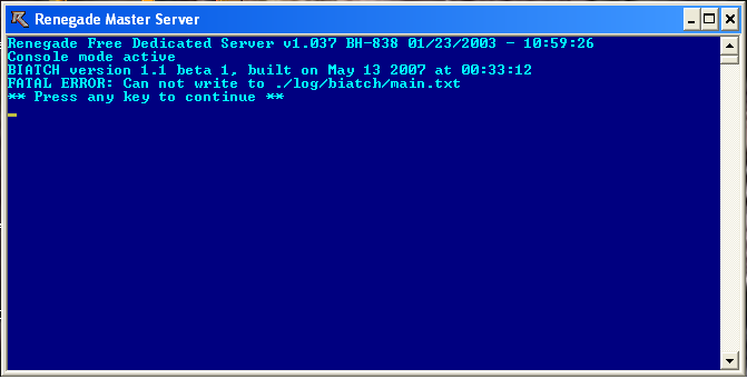 That bug still in the release? :-S Create the empty txt file server/log/biatch/main.txt