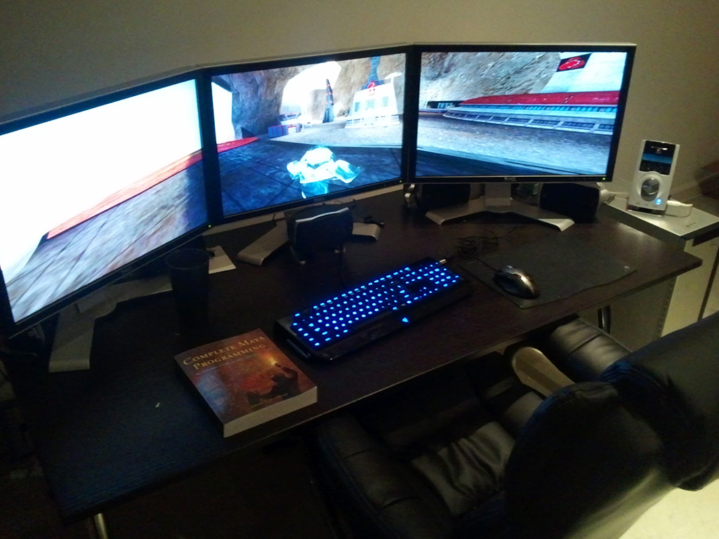 Well, I did take a picture of it There are a couple of issues with the HUD (it's attached to the edges of the outer monitors), but I'm working on fixing that.