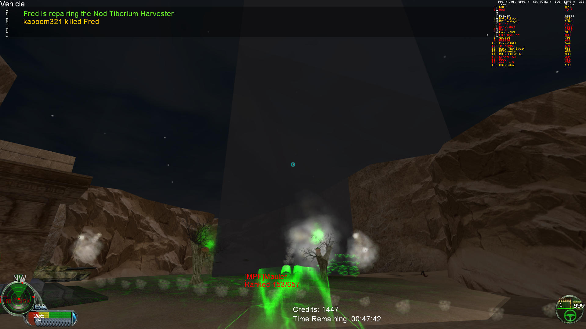 As I was saying before my computer decided to restart (it was like a blue screen but it decided not to display the blue screen...) That looks like what happens when there are too many polys on the screen (seen it on my laptop a few times and on my main computer once back when we were working on Rp2's power up system and it keep spawning power ups infinitely). The only thing that doesn't match that is that the issue appears to continue no matter where you look; normally it disappears for me when you look away from the point with too many polys.
