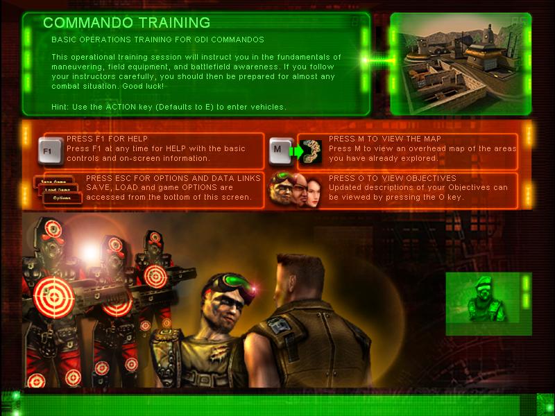 Moving on... I load the game, when it says insert data disk I cancel through to main menu. I click single player, tutorial (never played it before, me nooby), it loads the tutorial, and then... poof... the green loading bar starts filling up, then the game suddenly shuts down and sends me to desktop. No error messages, no explanations. I tried it on all other game modes and the same thing happens for all of them. I put a pic of the loading screen for anyone kind enough to actually help. I can get onto westwood online screens, but noones on there anyway (why?).